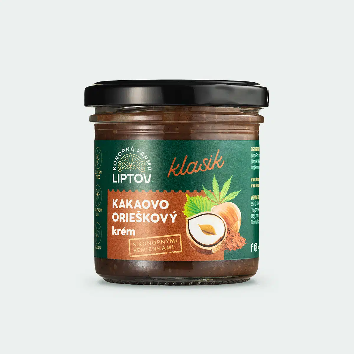 Ingredients: cocoa cream (70%) (sugar, hazelnuts, almonds, cocoa powder, rapeseed oil), shelled hemp seeds (30%)